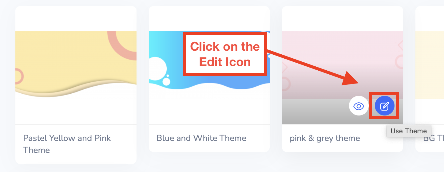 Once you click on "Themes," hover over a specific Theme you'd like to use and click on the Edit Icon to use or edit the theme.