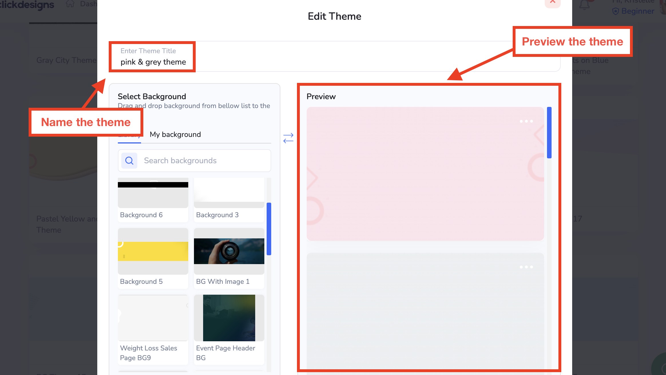 Go back to "My Designs," click on "Backgrounds," and then "Themes."