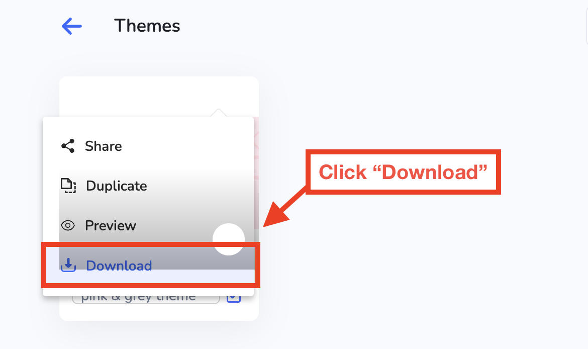 Here, you'll be able to view the Theme you saved earlier. Now, hover over the Theme and click on the ellipsis icon to then click on "Download."