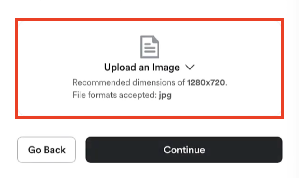 Then, after you scroll down, it'll give you an option to upload an image. Take note that the image dimensions must be 1280x720.