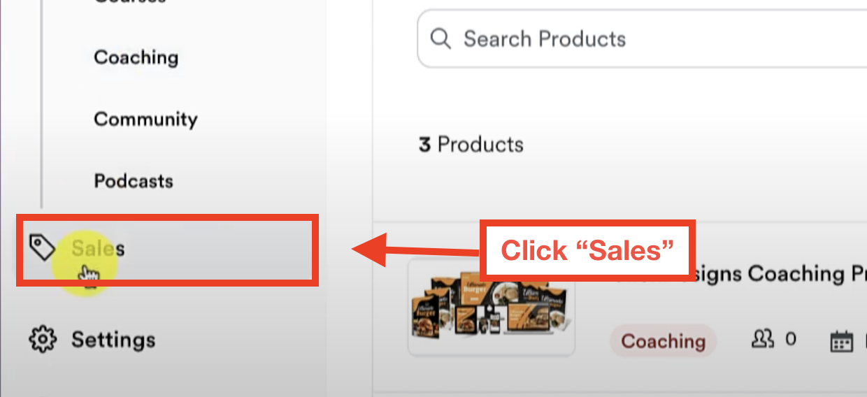 There are also other ways you can use ClickDesigns with Kajabi. You can actually also use it for your product images. On your Kajabi dashboard, click on "Products."