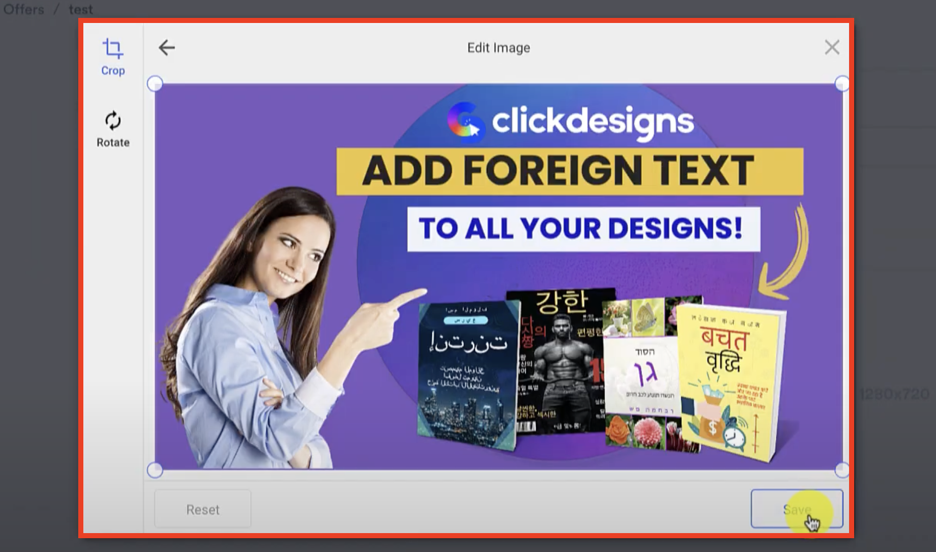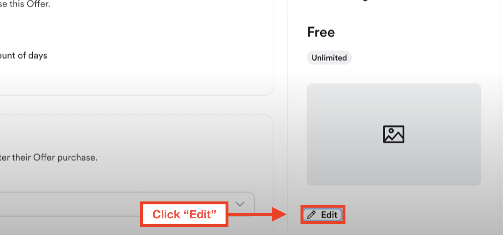 You'll be able to view any product you make using ClickDesigns in your offer. On the right side of the screen, you can also change the product or offer image. First, click on "Edit."