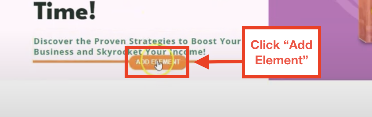 Once you've finished editing the headline and subheadline, let's try adding more image icons. Do this by clicking on "Add Element," clicking on the image icon, and uploading your design.