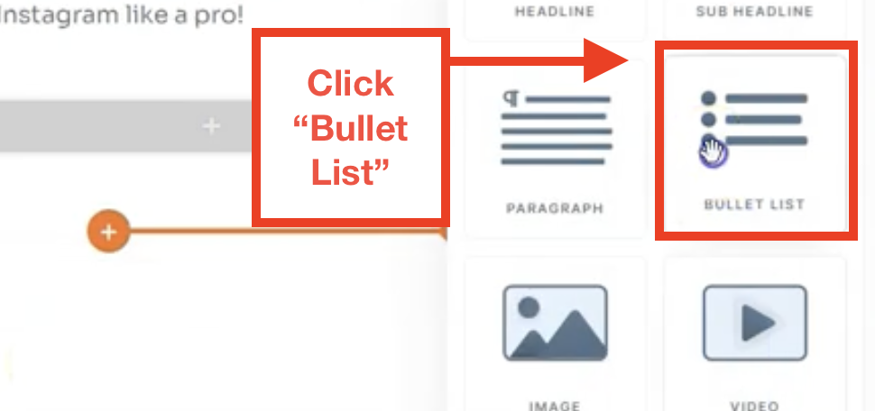 The second column is going to be a bullet list. To do this, simply click on the empty column and pick "Bullet List." Feel free to edit and customize the list to your liking!