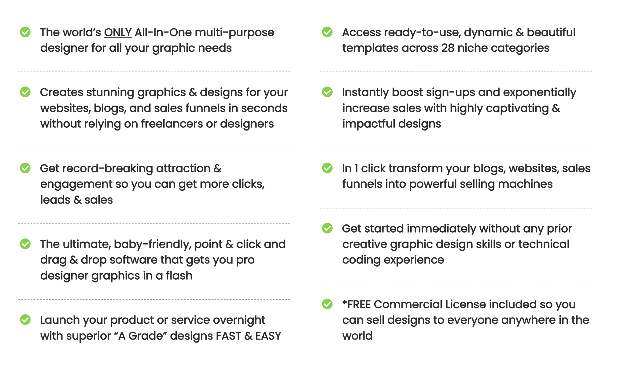 Priced at $397.00, the ClickDesigns+ package contains the following inclusions (powered by 8 NEW features):