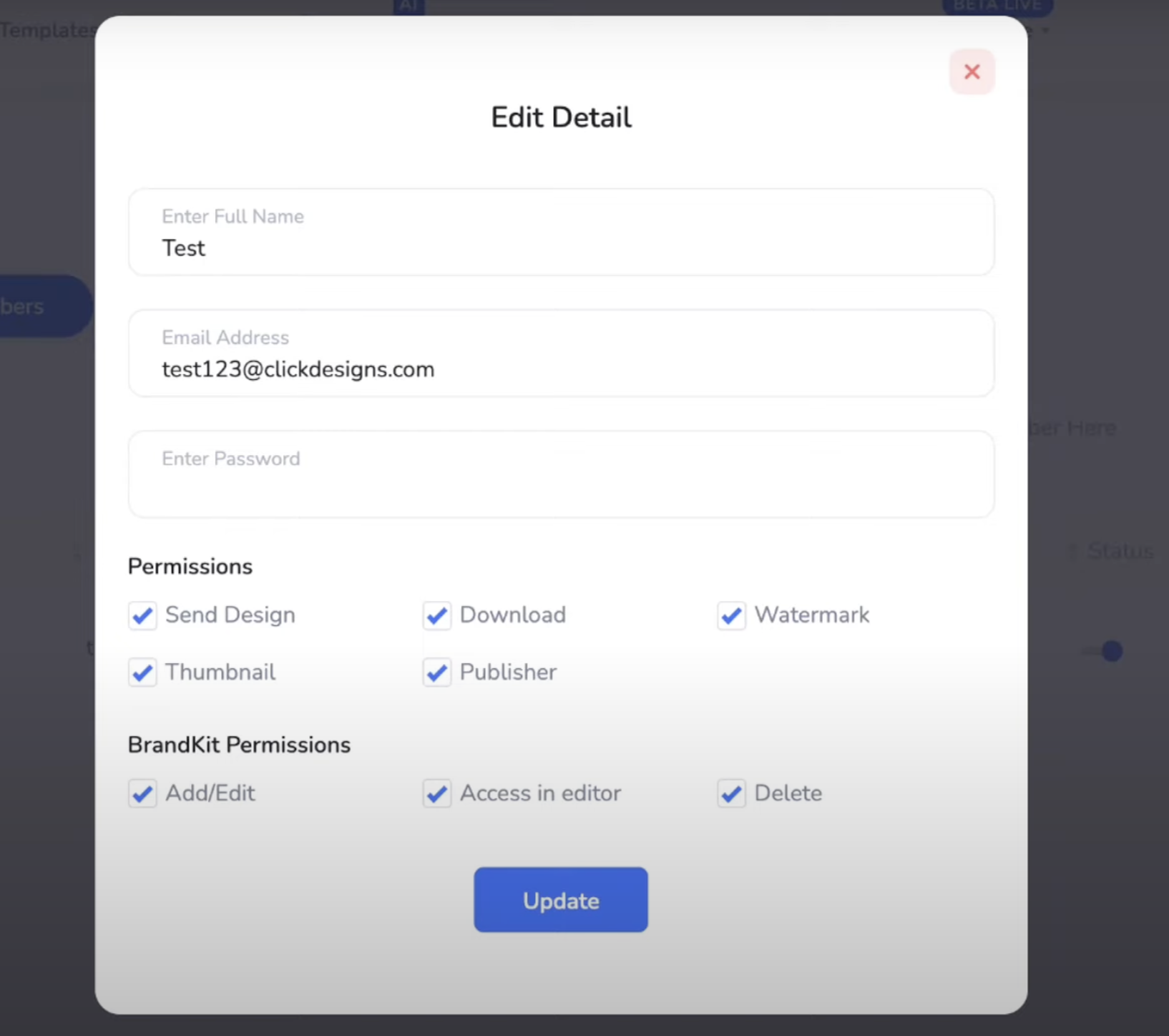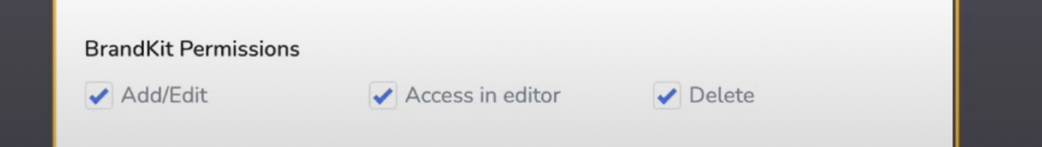 After the Permissions, the new Feature Update now enables the BrandKit Permissions - where you can enable access for adding/editing brand kits, accessing the brand kits in the ClickDesigns Editor, and deleting brand kits in the Agency.