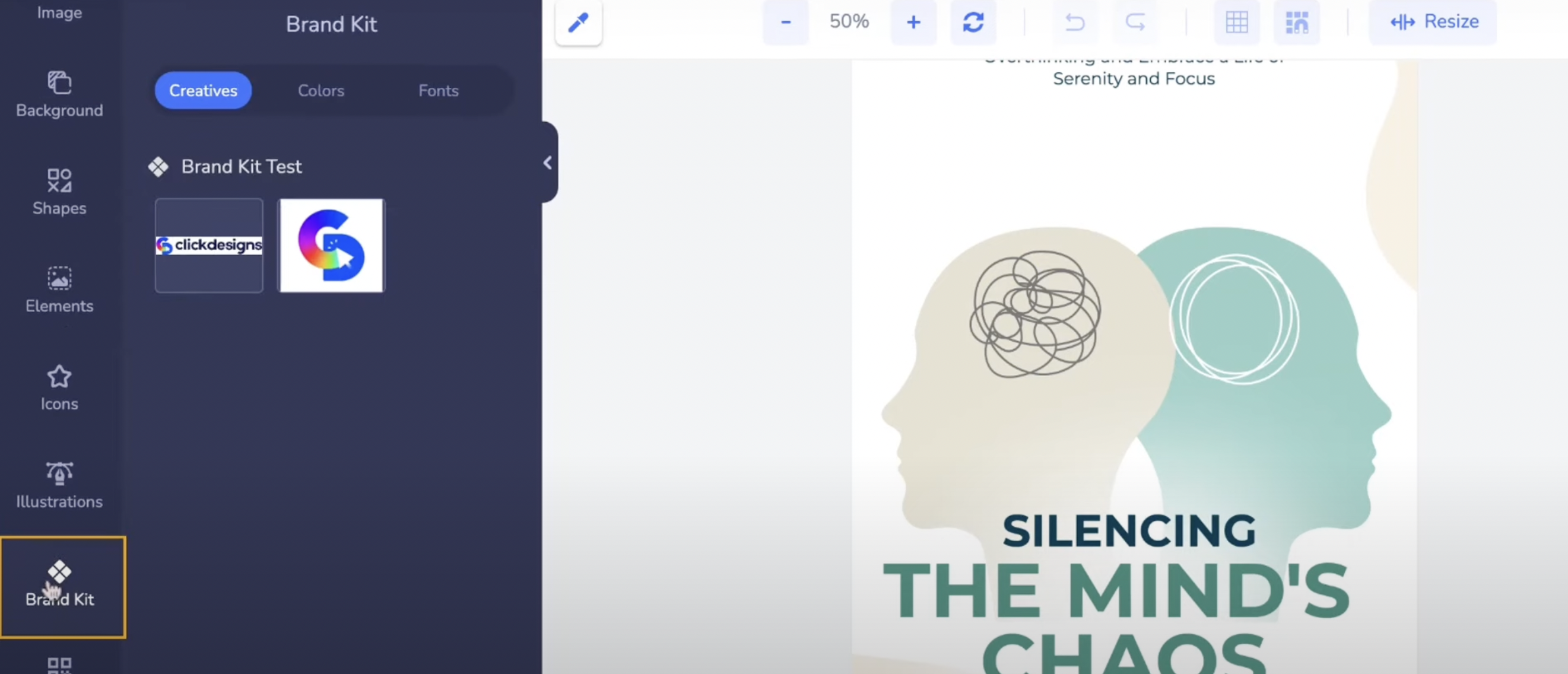 And finally, if you allowed your Team Member the "Access in Editor" for the Brand Kits, this means that when they launch the ClickDesigns Editor to edit from scratch or an already-made design, they can utilize the elements of the Brand Kits from the Agency for their edits.