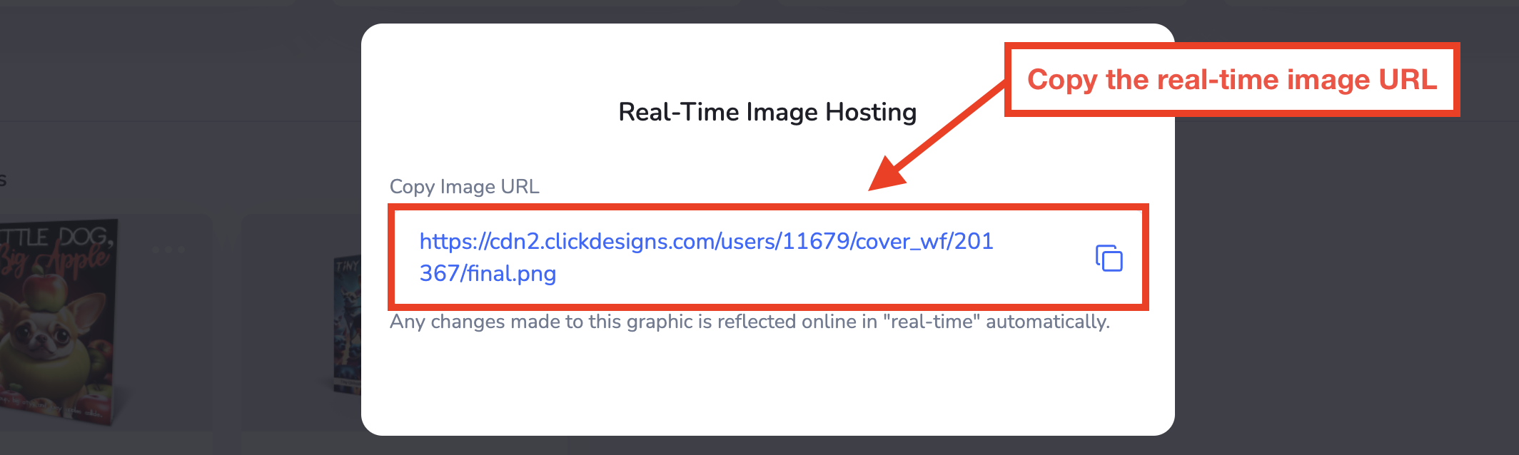 Next, copy the real-time image URL, which you can now paste into any of your site builders, landing pages, or blogs.